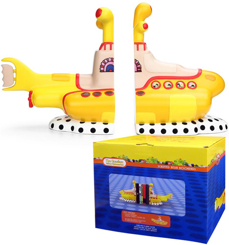 Yellow Submarine Sculpted Bookends in boxed packaging.