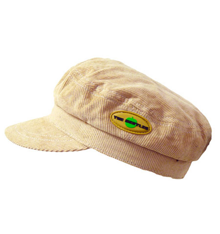 Brown Corduroy Hat with metal Apple stud and fabric patch at the back