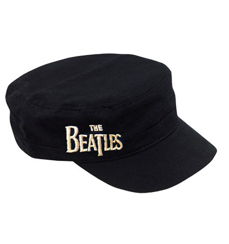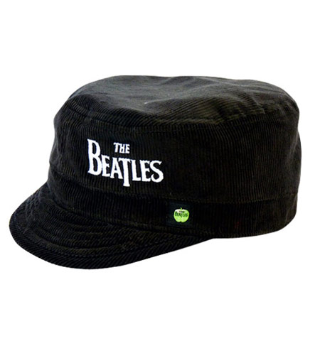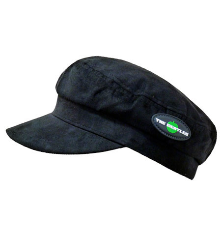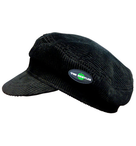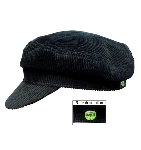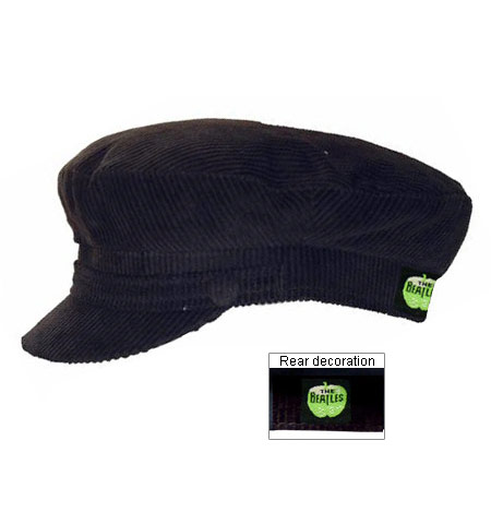 Black Corduroy Hat with metal Apple stud on left and fabric patch at the back