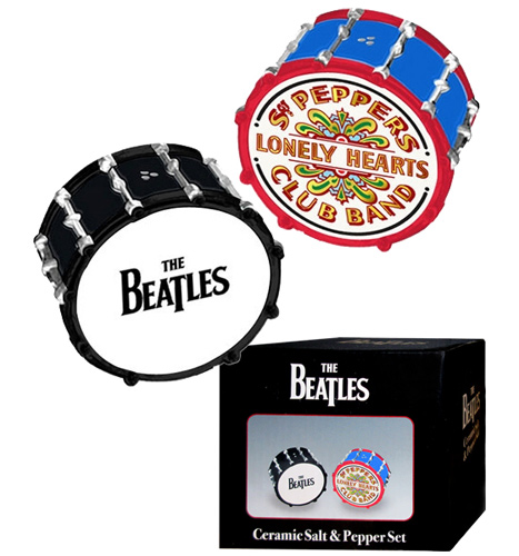 Ceramic Salt and Pepper Set: The Beatles Drums Ceramic set in boxed packaging. Set 8.5 x 4.5cm (3.3 x 1.7") Box 12 x 10.5 x 11cm (4.7 x 4.1 x 4.3") |