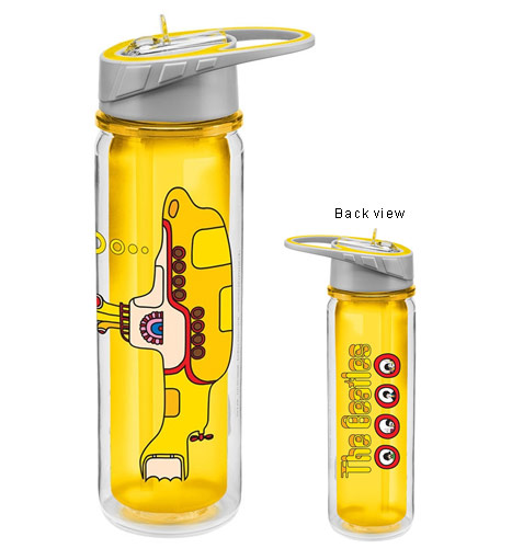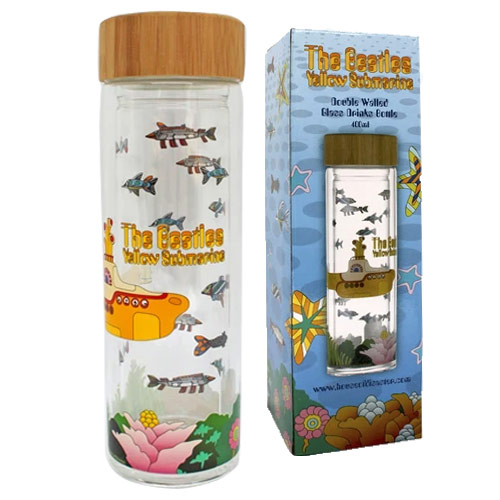 Yellow Submarine Glass Water Bottle 400ml. Not suitable for the dishwasher Comes in presentation box. Box 8 x 8 x 25cm (3.1 x 3.1 x 9.8") |