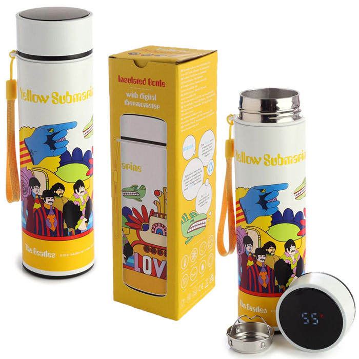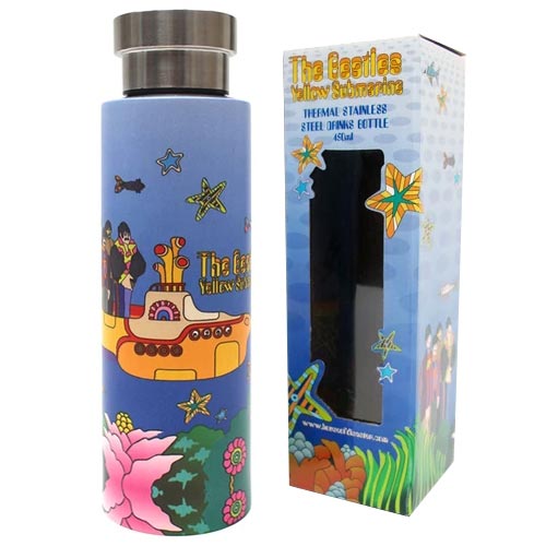 Flask: Yellow Submarine High-grade stainless steel, BPA free. Keeps drinks hot for 12 hours and cold for 24 hours. Hand wash recommended. Comes in presentation box. Box 7 x 23 x 7cm (2.7 x 9 x 2.7") |