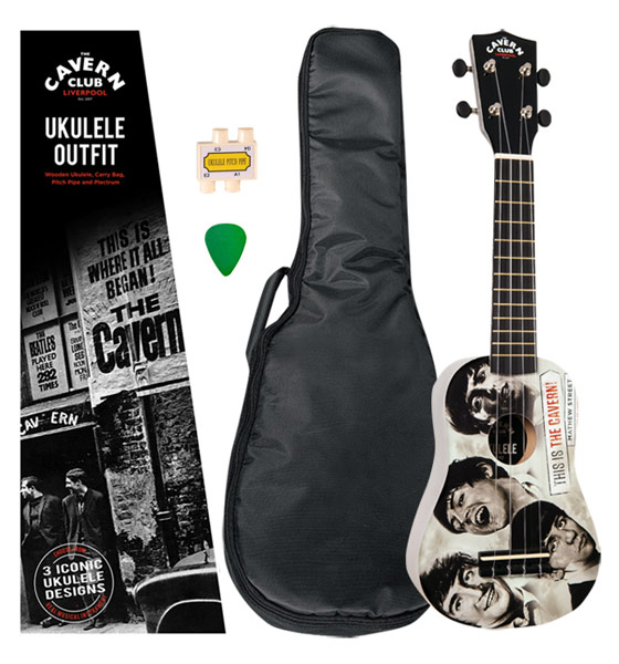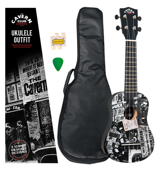 Ukulele: The Cavern Club Fab Faces Contains Wooden Ukulele, Carry Bag, Pitch Pipe and Plectrum. Comes in presentation box. Ukulele 55 x 17 x 5.5cm (21.6 x 6.6 x 2.1") Box 57 x 20 x 7.5cm (22.4 x 7.8 x 2.9") |